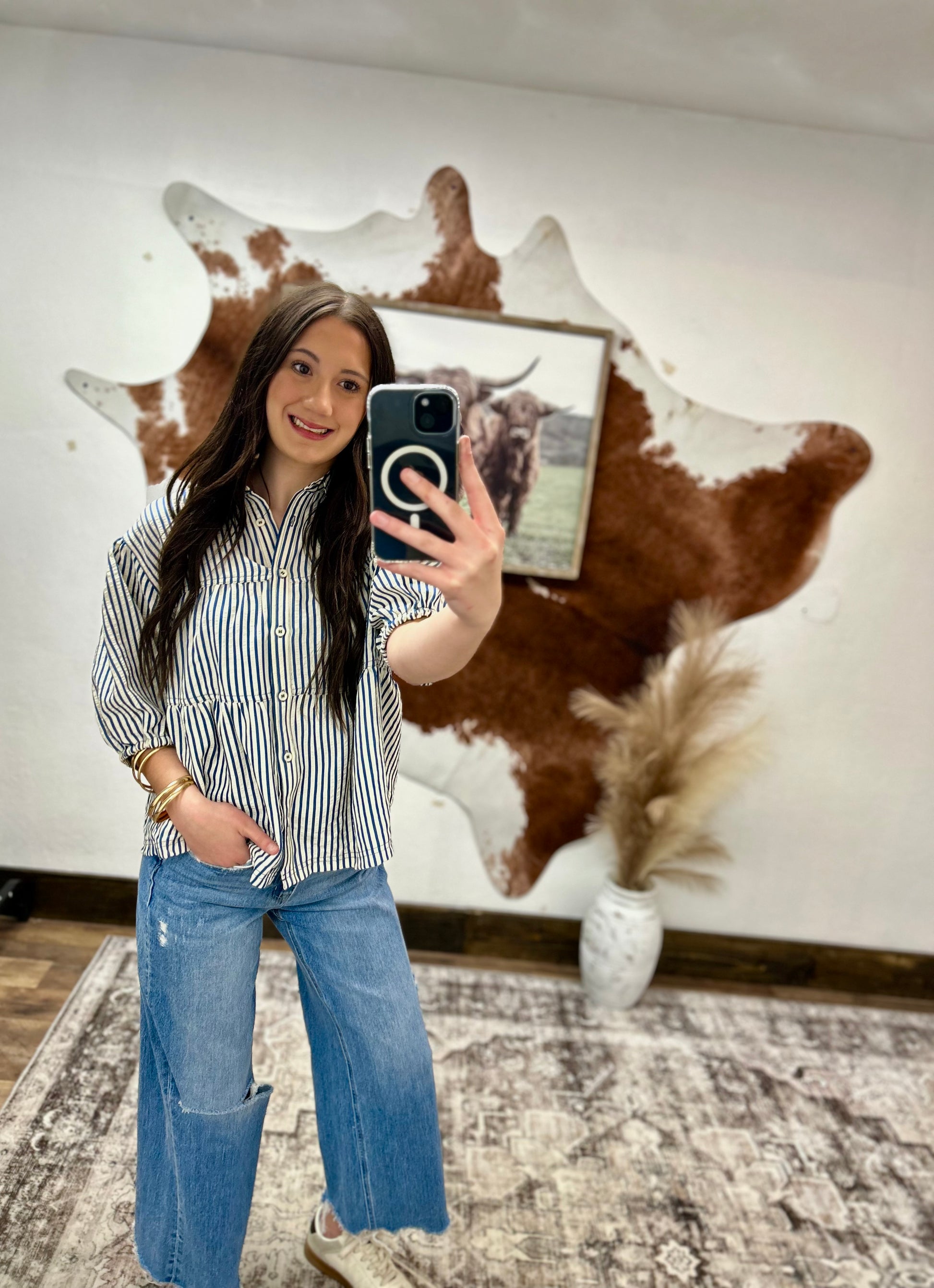 Heirloom Navy Blue Stripe Top